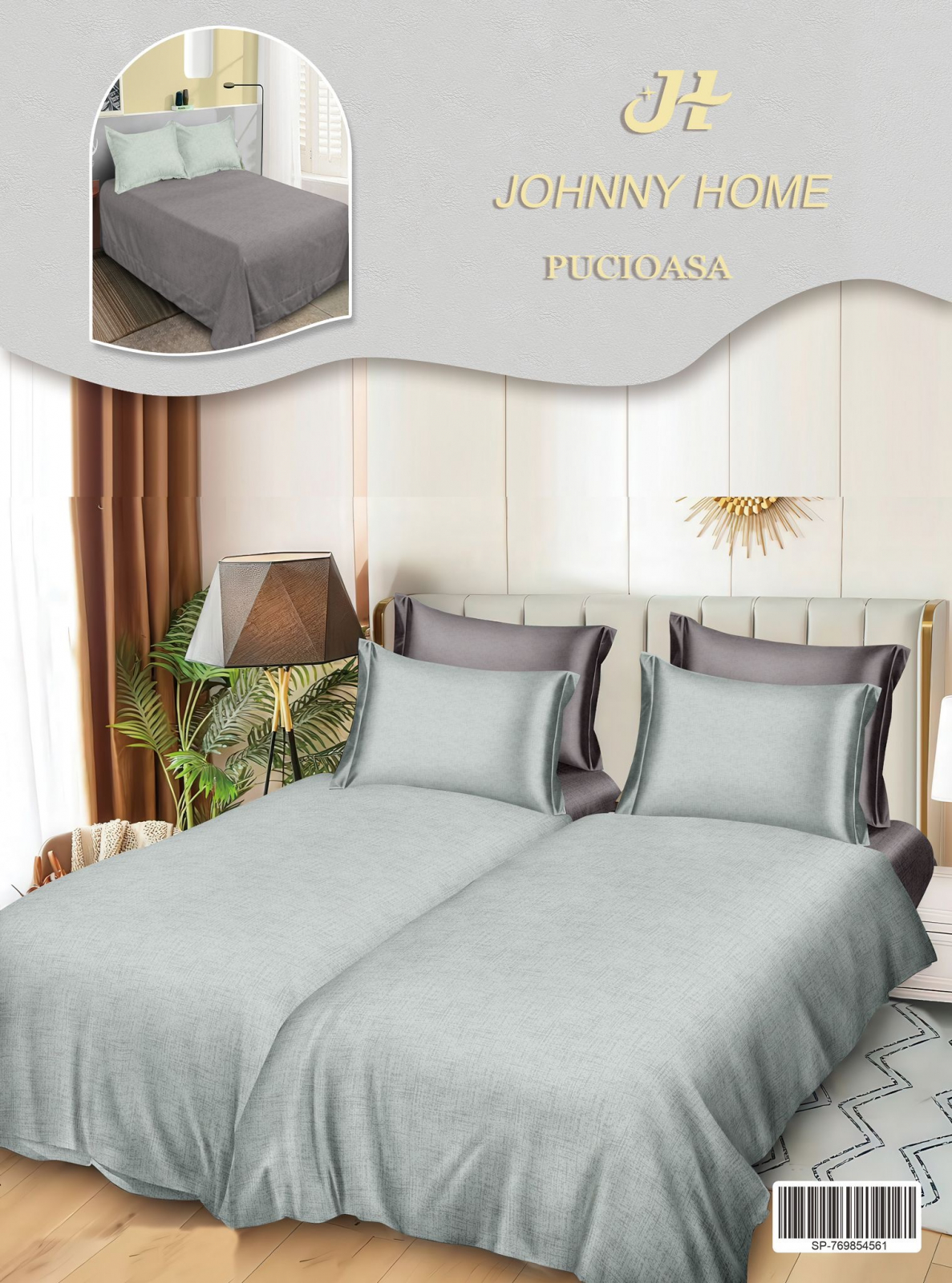 Alege lenjeria de pat 7 piese din bumbac satinat cu 2 pilote și bucură-te de un somn odihnitor, confort suprem și un dormitor care emană rafinament.