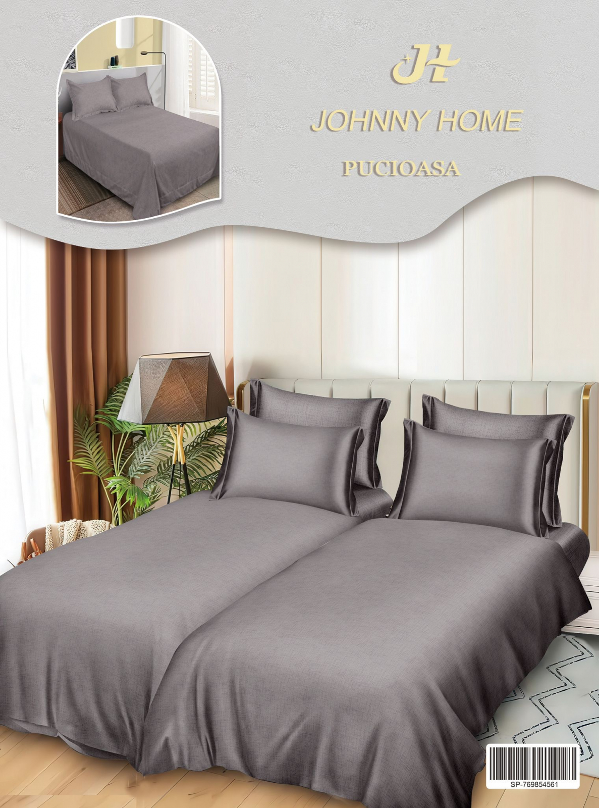 ELEGANT HOME PUCIOASA Lenjerie de Pat, 7 Piese, Bumbac Satinat Superior, cu 2 Pilote - Gri