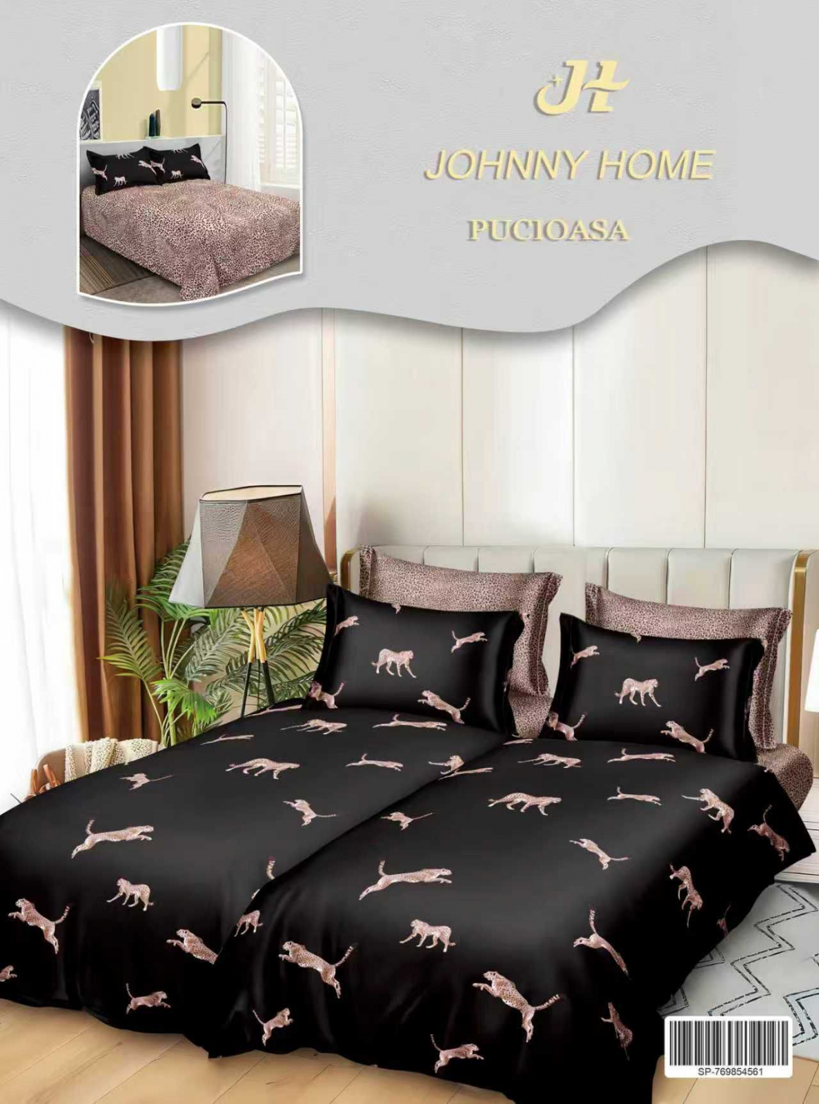 ELEGANT HOME PUCIOASA Lenjerie de Pat, 7 Piese, Bumbac Satinat Superior, cu 2 Pilote - Jaguar