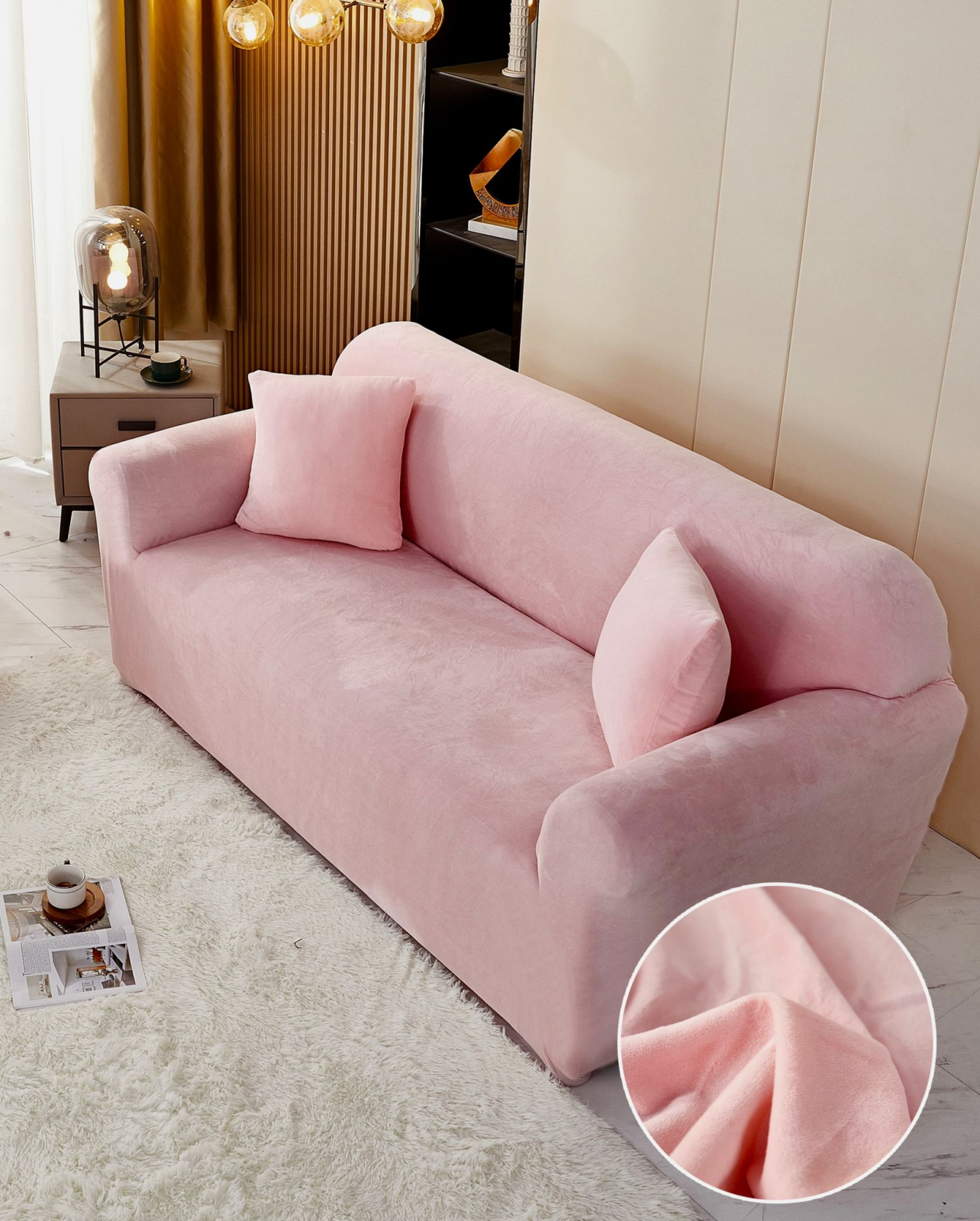 Husa Elastica Pentru Fotoliu/ Canapea/ Coltar Uni Catifea - Roz Pudra