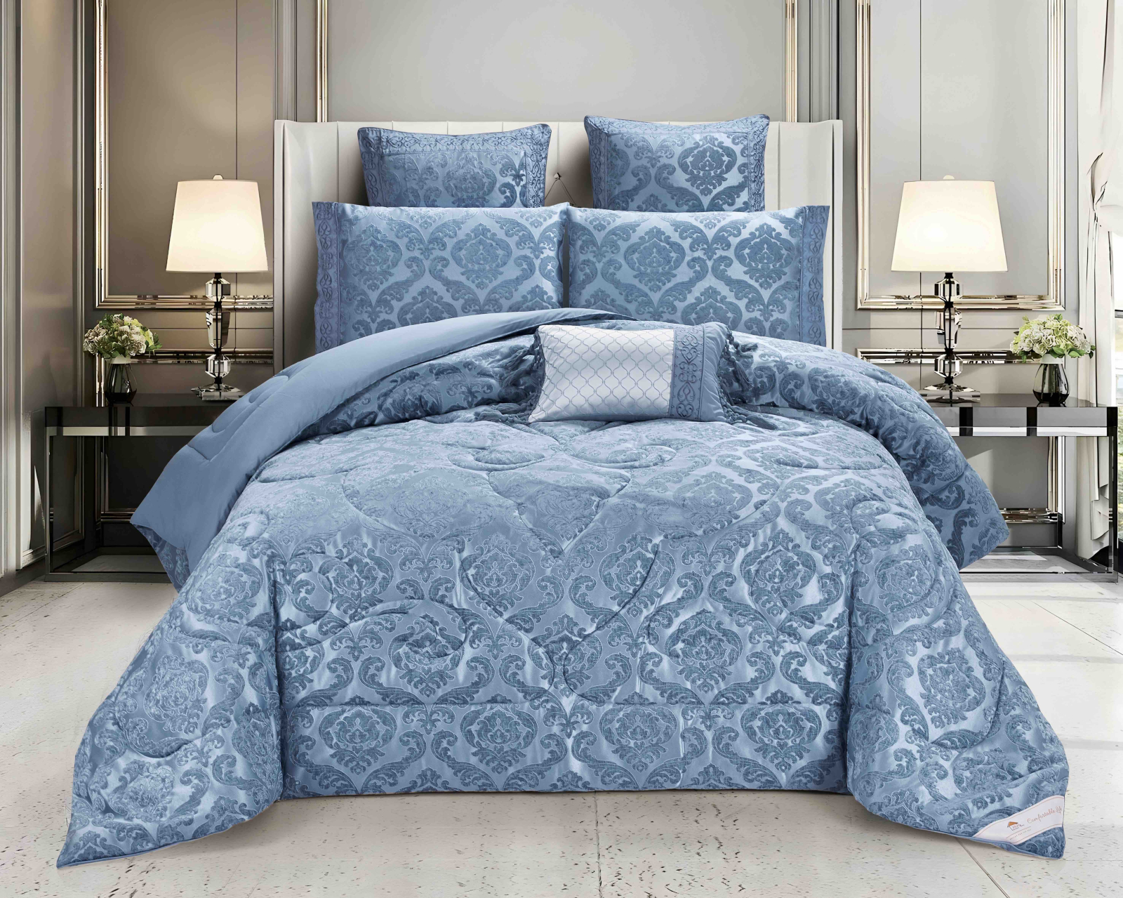 Lenjerie de Pat 2 Persoane cu Elastic și Pilotă Inclusă – Set 7 Piese din Bumbac Jacquard