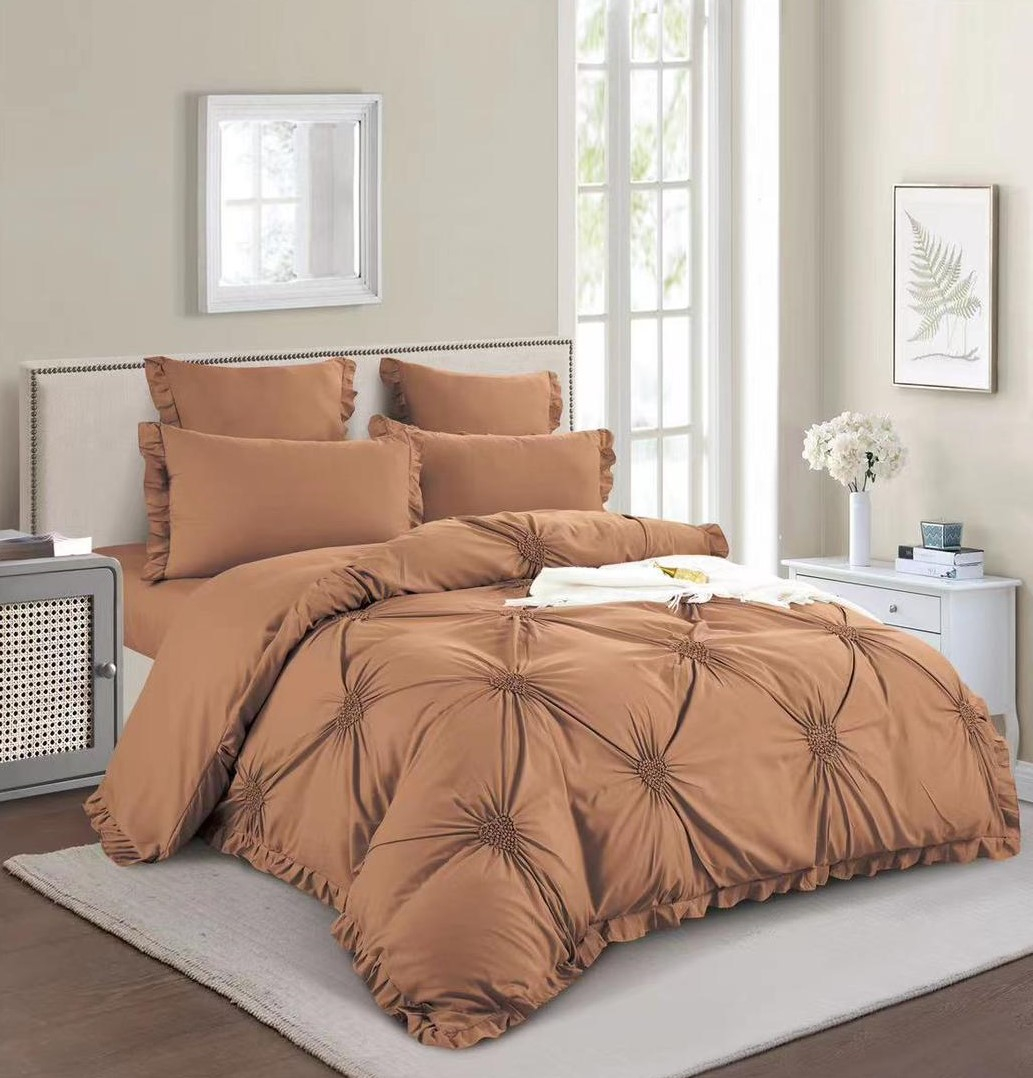 Pliurile brodate fin se regăsesc pe partea superioară a cearșafului de pilotă și pe fețele de pernă, oferind un aspect rafinat și romantic. Interiorul și cearșaful de pat rămân simple, pentru a asigura confort sporit în timpul somnului.