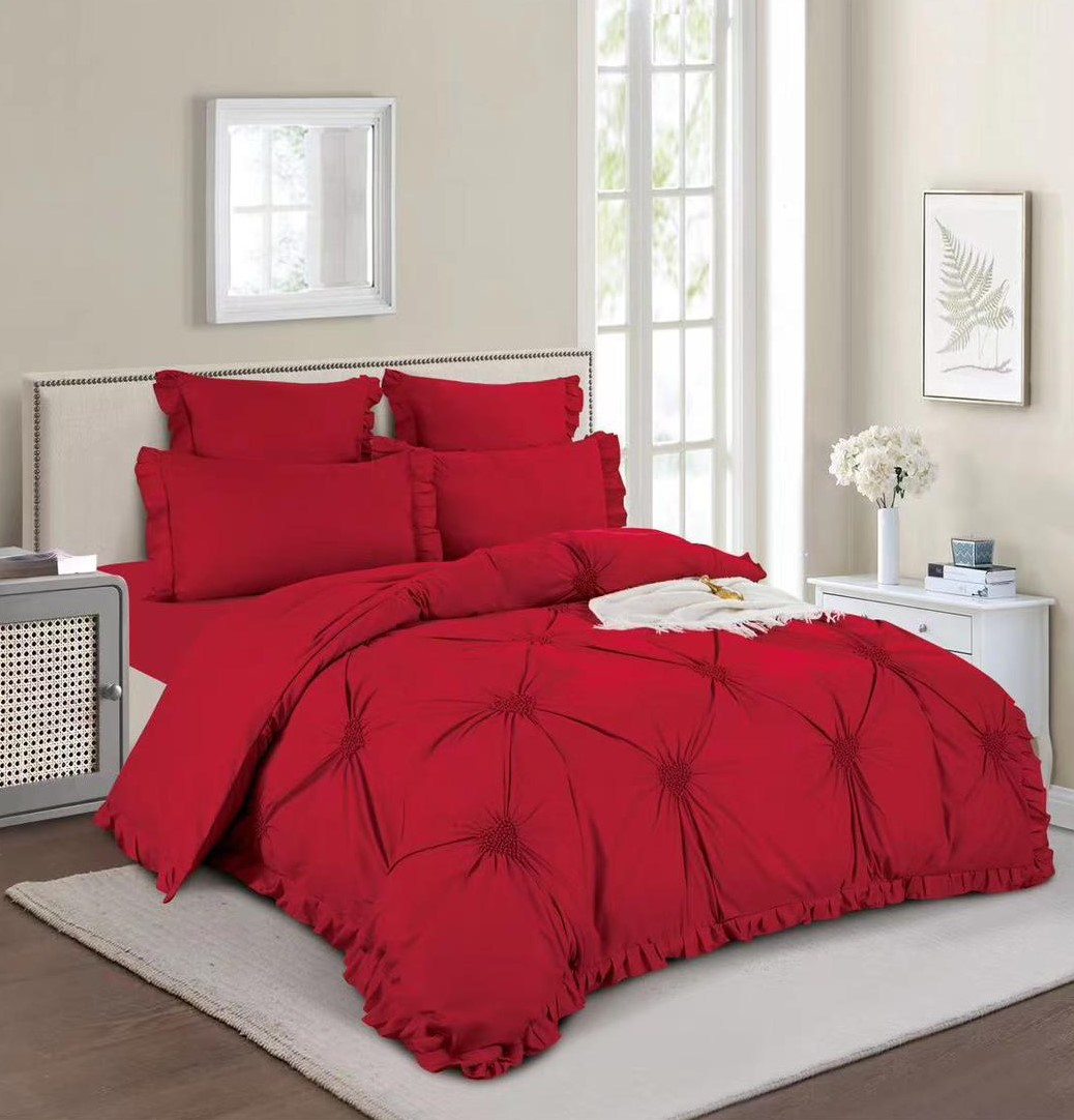Pliurile brodate fin se regăsesc pe partea superioară a cearșafului de pilotă și pe fețele de pernă, oferind un aspect rafinat și romantic. Interiorul și cearșaful de pat rămân simple, pentru a asigura confort sporit în timpul somnului.