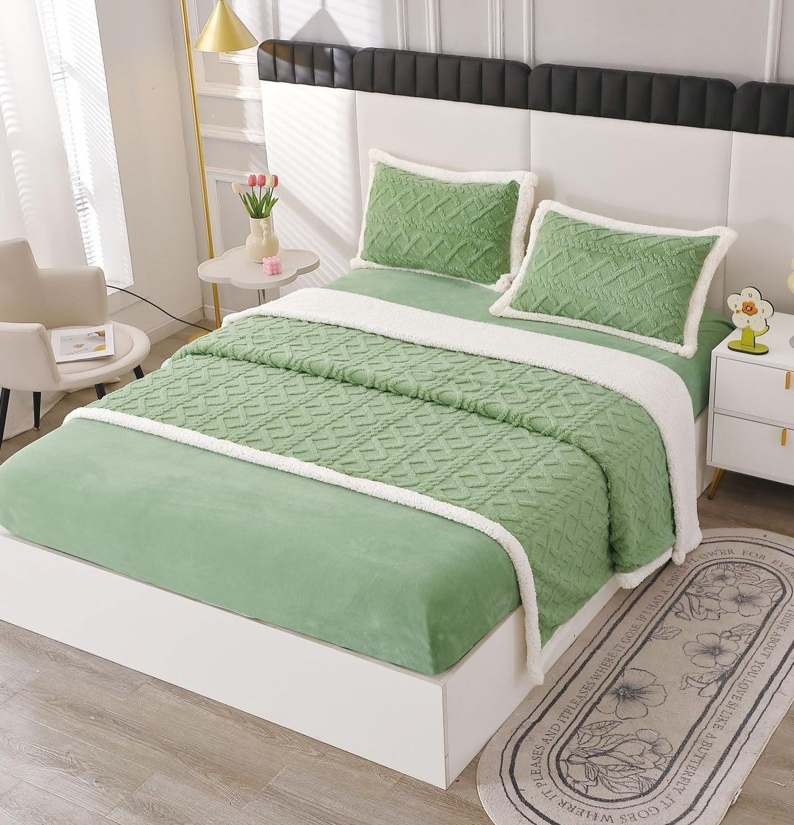 SUPER ELEGANT PUCIOASA Lenjerie Pat Dublu Cocolino 4 Piese, cu Elastic, din Blăniță Tricotată