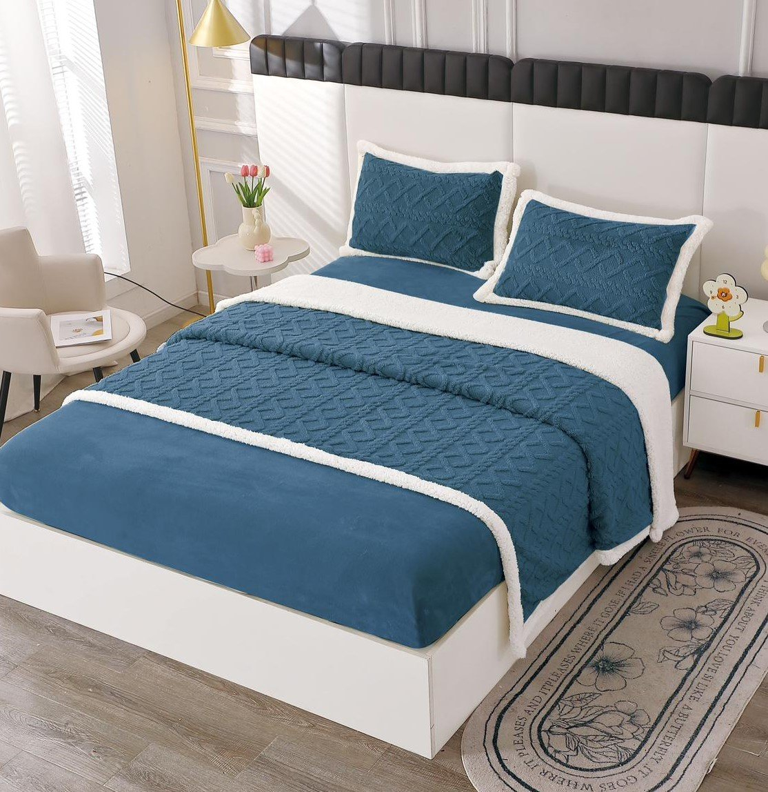 SUPER ELEGANT PUCIOASA Lenjerie Pat Dublu Cocolino 4 Piese, cu Elastic, din Blăniță Tricotată