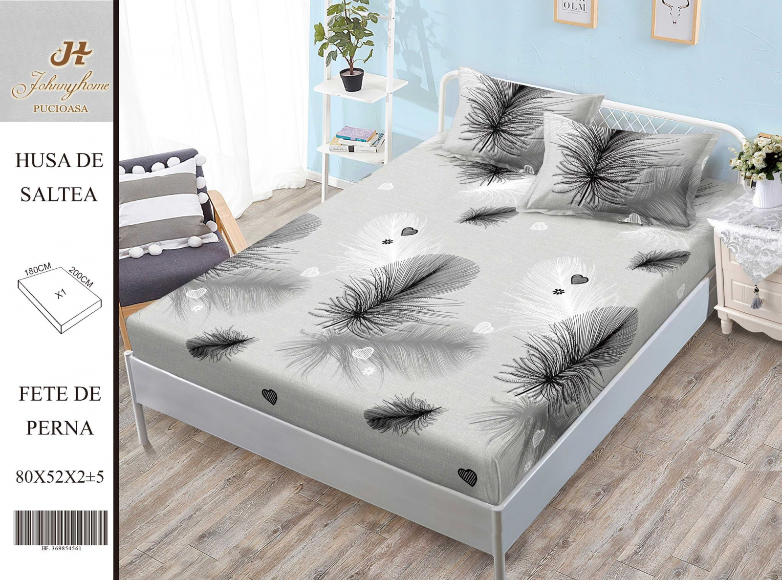 ELEGANT HOME PUCIOASA Husa de pat cu elastic 180x200 din Bumbac Finet + 2 Fete de Perna - Pene