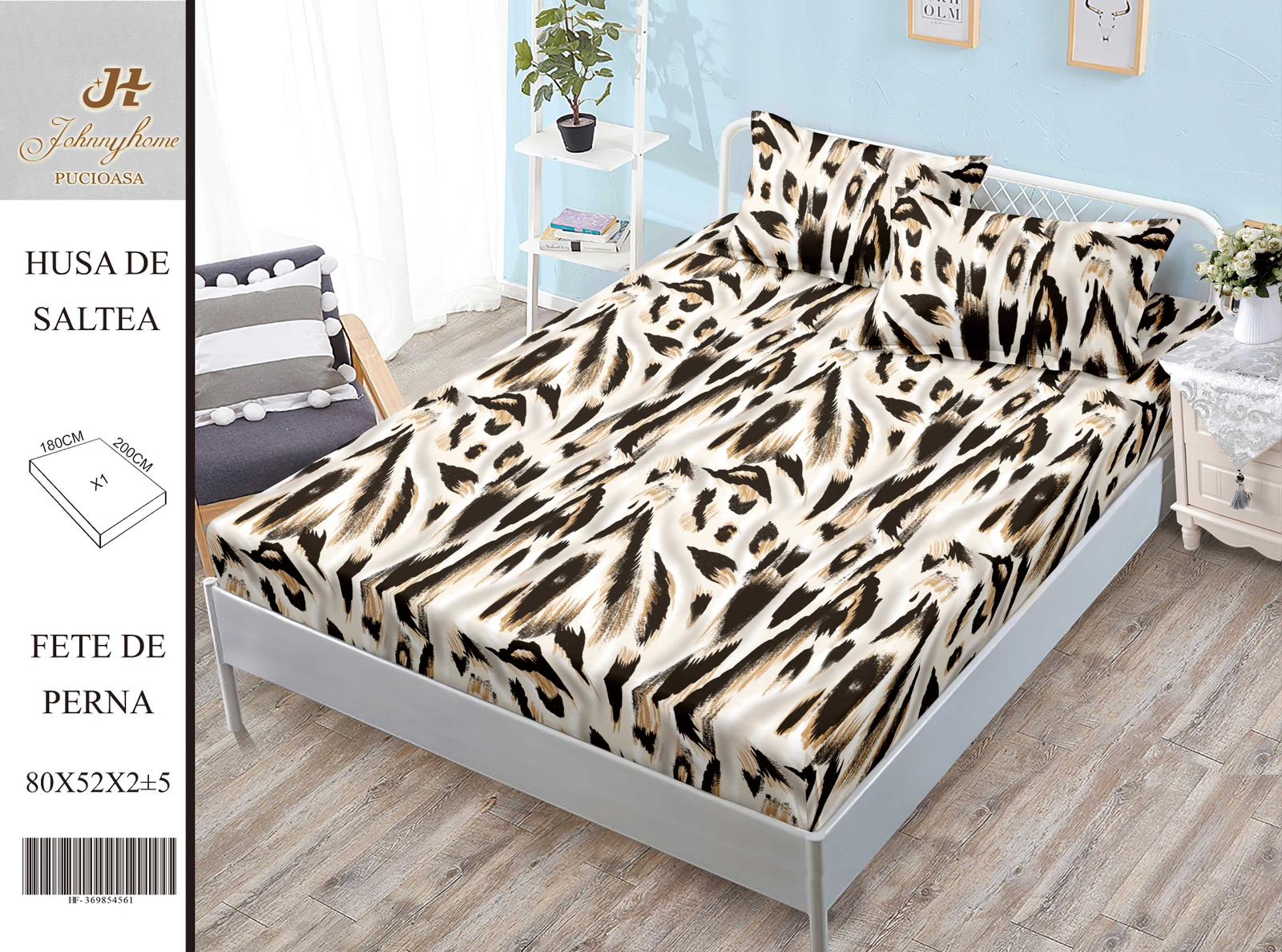 ELEGANT HOME PUCIOASA Husa de pat cu elastic 180x200 din Bumbac Finet + 2 Fete de Perna - Print