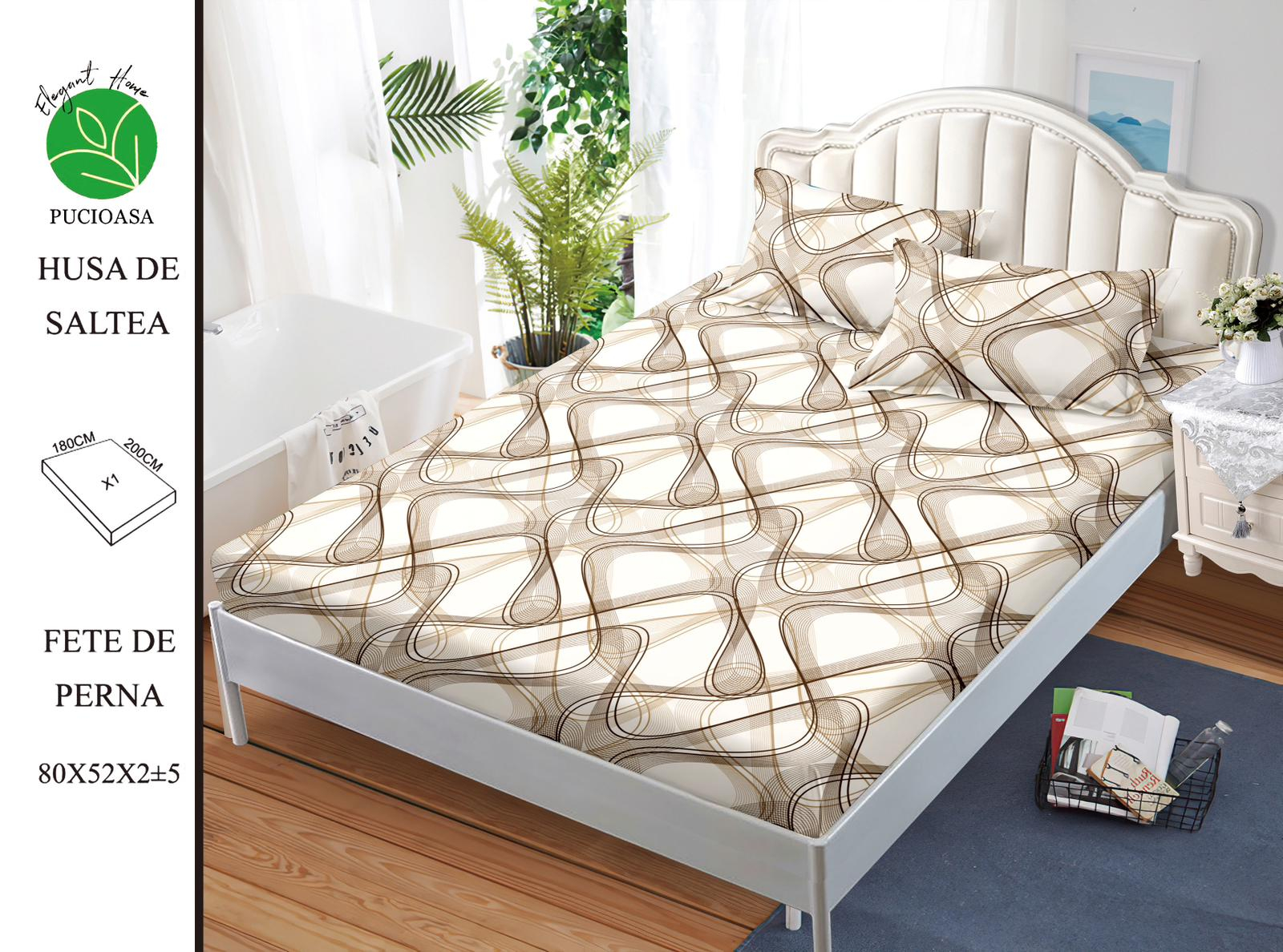 ☆Husa imbraca saltelele cu latime cuprinsa intre 140-180 cm si lungime de 200 cm, atat pe fata cat si lateralul acesteia, avand elastic de jur imprejur, fixandu-se perfect pe saltea.
