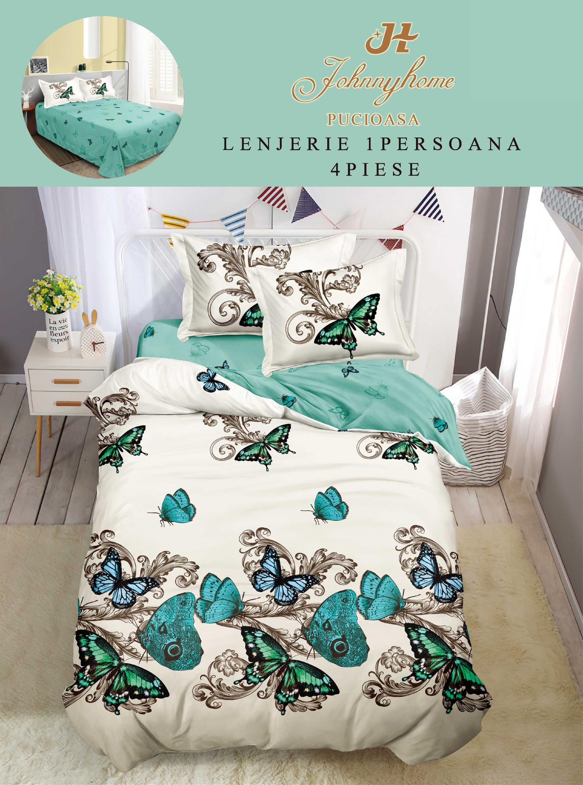 ELEGANT HOME PUCIOASA Lenjerie De Pat 1 Persoana, 4 Piese, Bumbac Finet - Fluturi