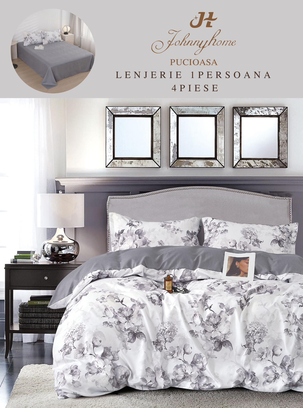 Lenjerie pentru pat de o persoana cu 4 piese, confectionata din bumbac 100% finet.