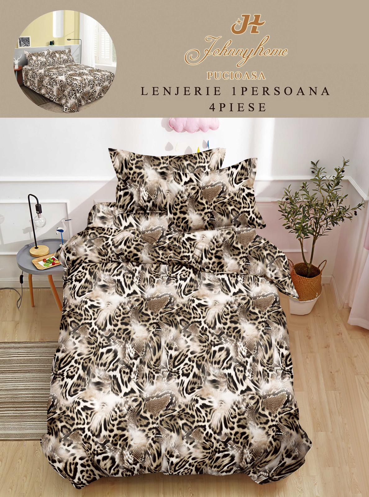 ELEGANT HOME PUCIOASA Lenjerie De Pat 1 Persoana, 4 Piese, Bumbac Finet - Leopard