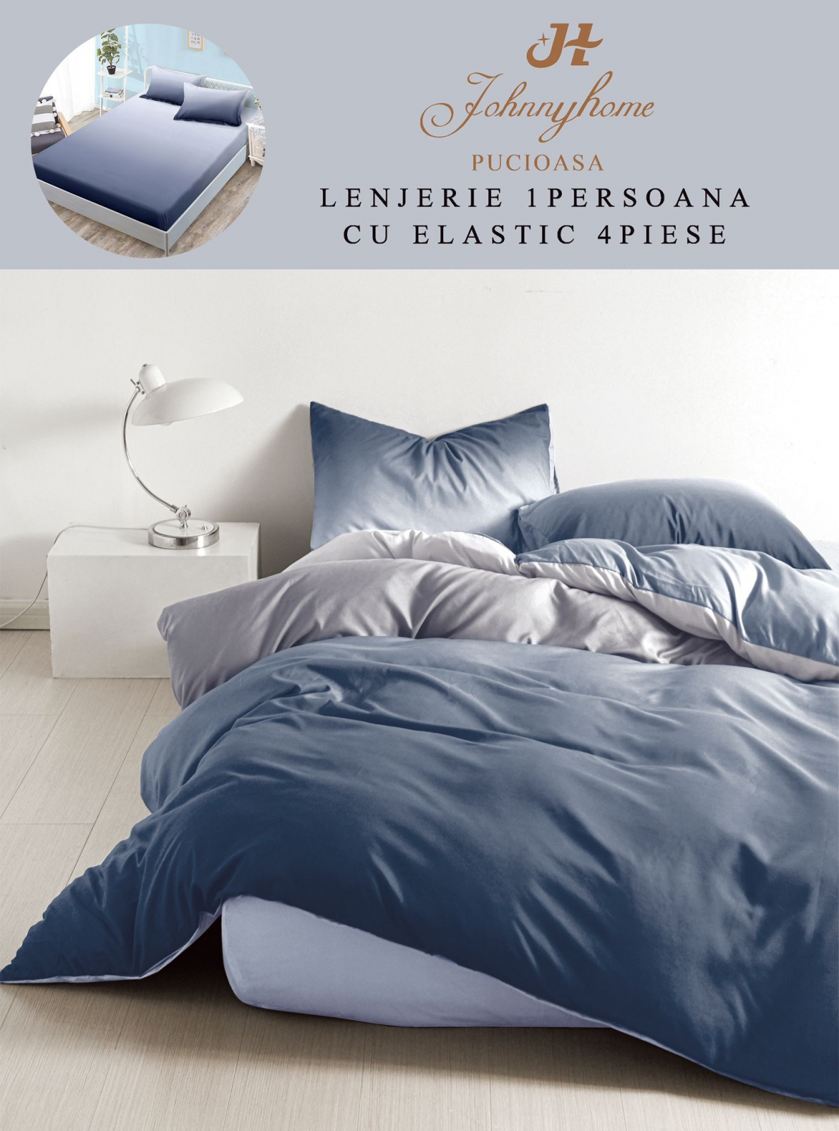ELEGANT HOME PUCIOASA Lenjerie De Pat Finet Cu Elastic 1 Persoana - Albastru prafuit