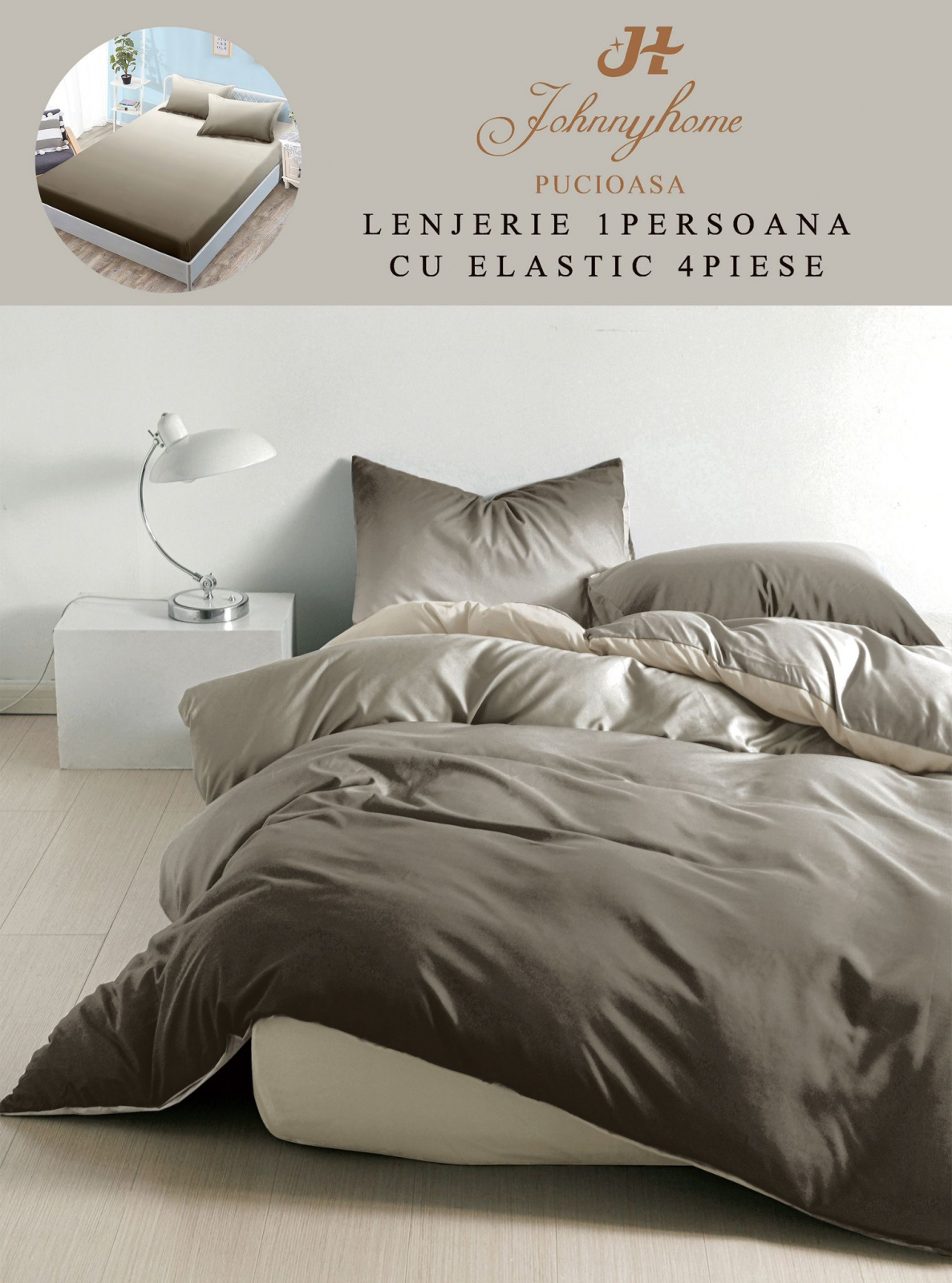 ELEGANT HOME PUCIOASA Lenjerie De Pat Finet Cu Elastic 1 Persoana - Grej