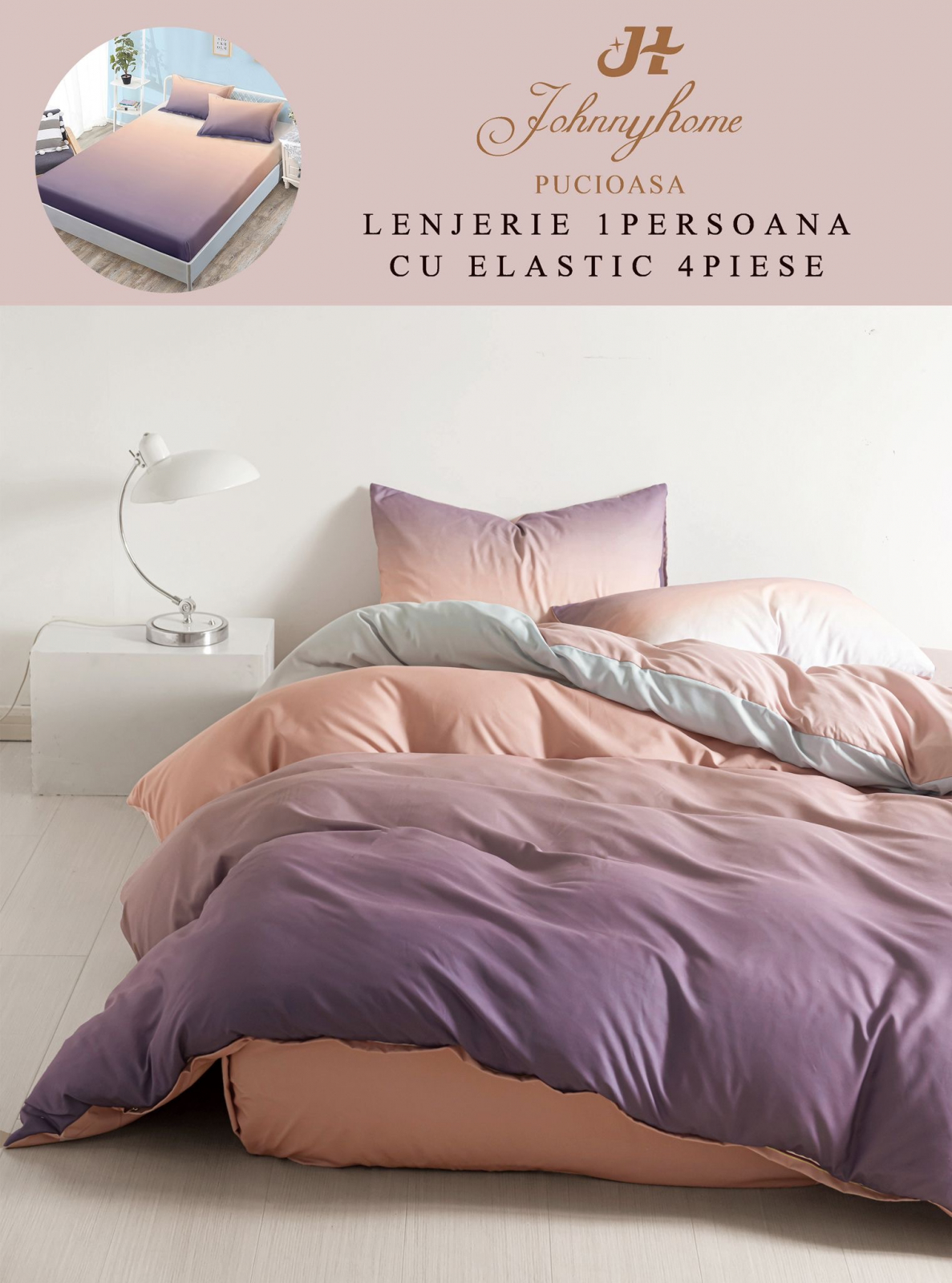 ELEGANT HOME PUCIOASA Lenjerie De Pat Finet Cu Elastic 1 Persoana - Piersica