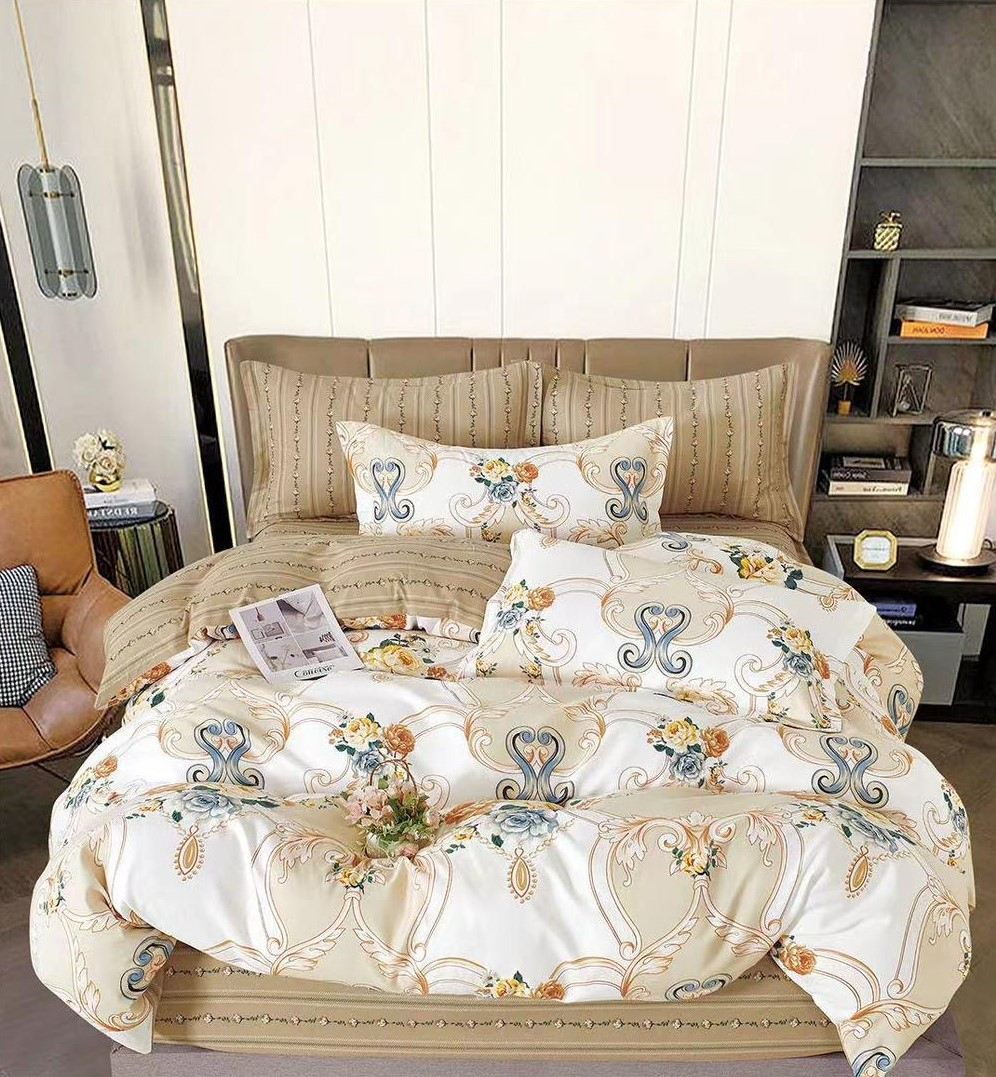 ELEGANT HOME PUCIOASA Lenjerie Din Bumbac Tip Finet 6 Piese Pentru Pat Dublu - Bej
