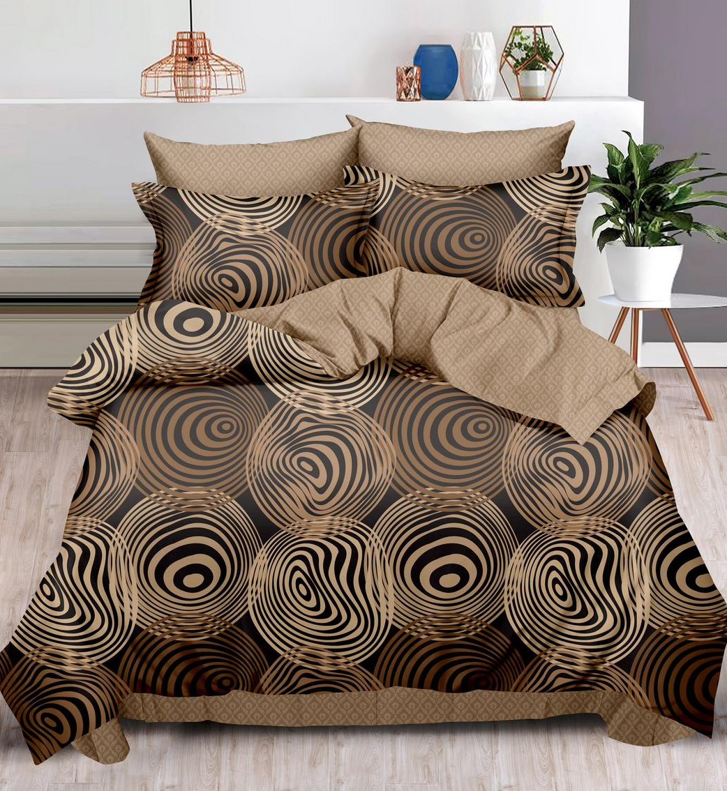 ELEGANT HOME PUCIOASA Lenjerie Din Bumbac Tip Finet 6 Piese Pentru Pat Dublu - Brown Pattern