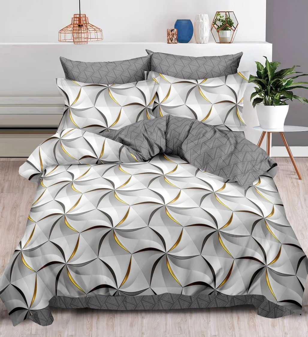 ELEGANT HOME PUCIOASA Lenjerie Pat Dublu, Bumbac Finet, 6 Piese, CU ELASTIC - Abstract Gri