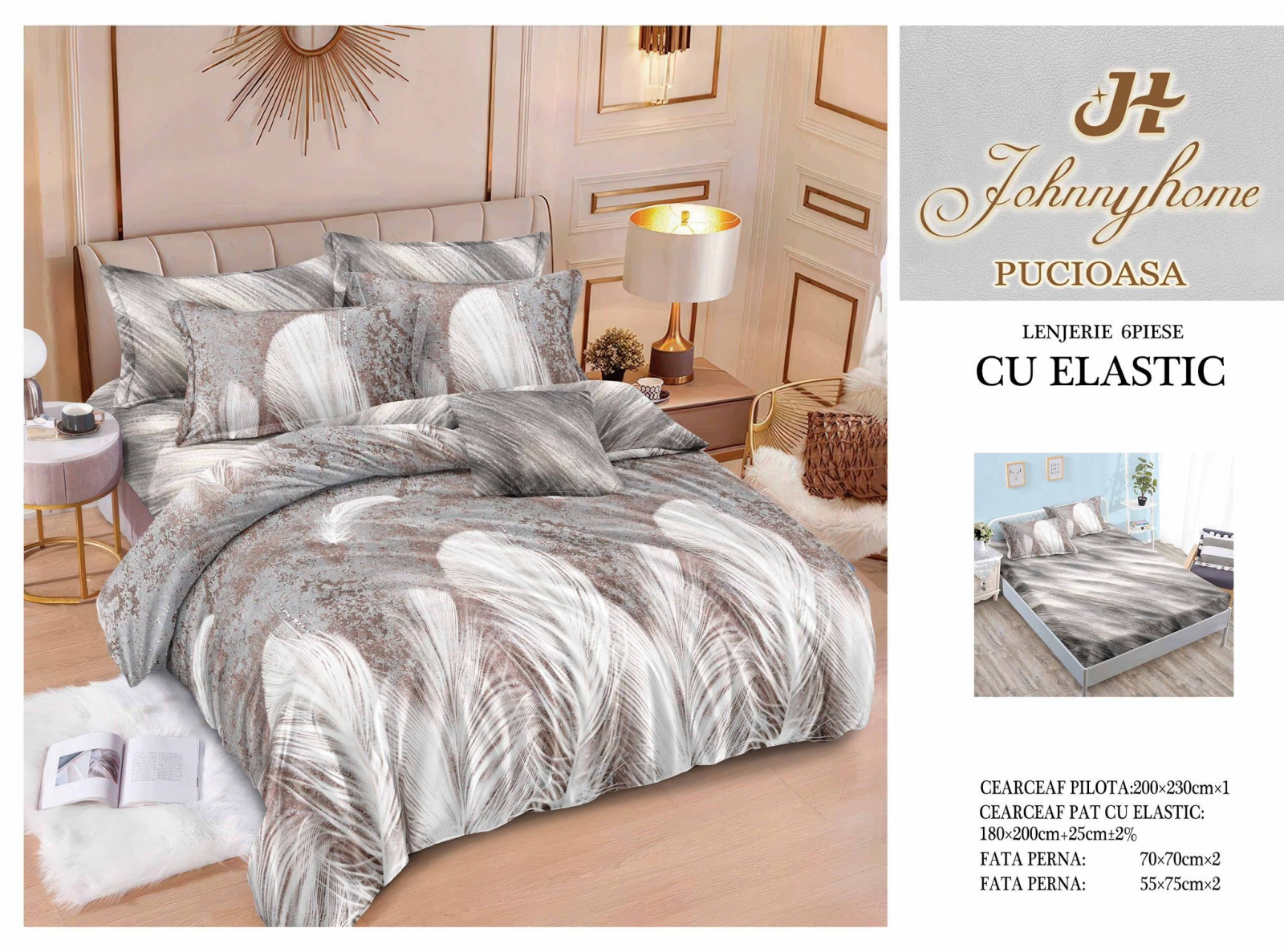 ELEGANT HOME PUCIOASA Lenjerie Pat Dublu, Bumbac Finet, 6 Piese, CU ELASTIC - Pene