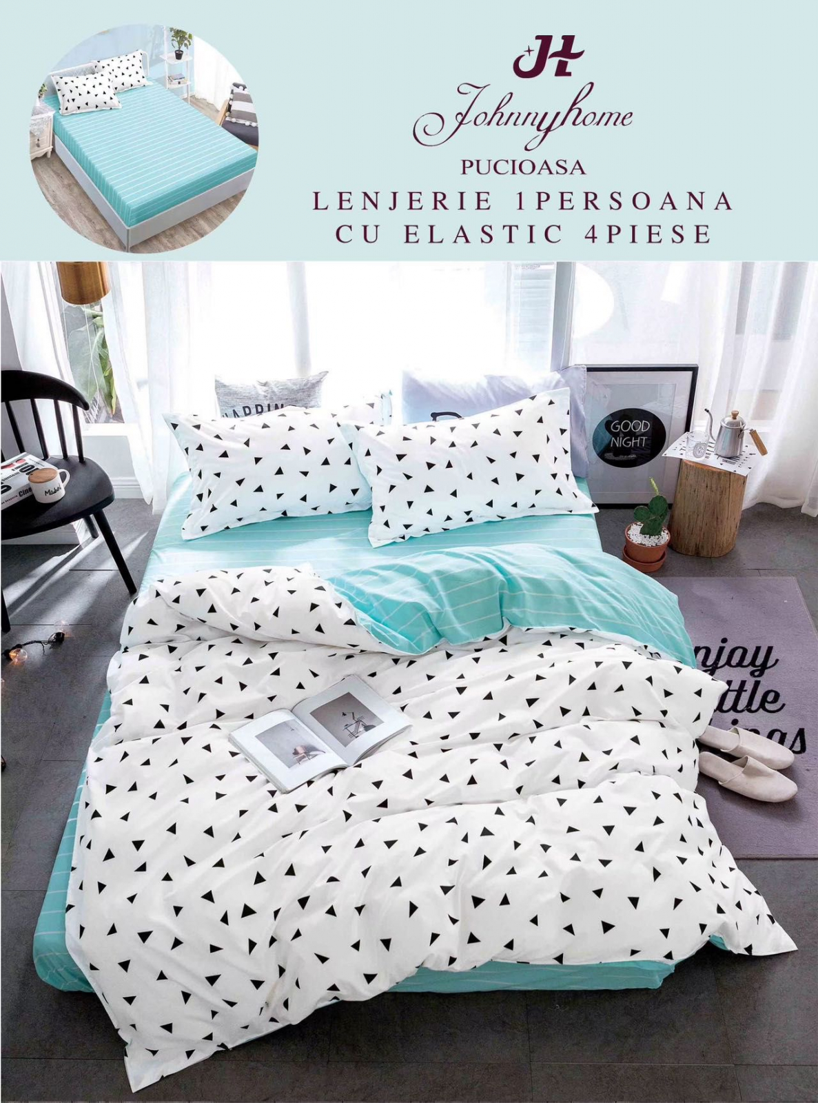Lenjerie pentru pat de o persoana cu 4 piese, confectionata din bumbac 100% finet.