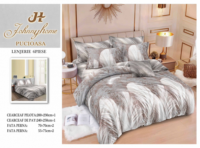 Set Lenjerie De Pat 1 Persoana, 4 piese, cu ELASTIC - Modern