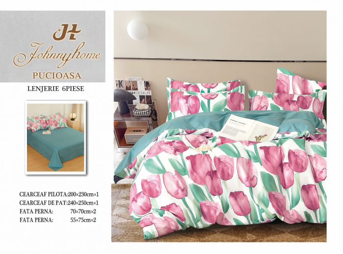Set Lenjerie De Pat 1 Persoana, 4 piese, cu ELASTIC - Papadie
