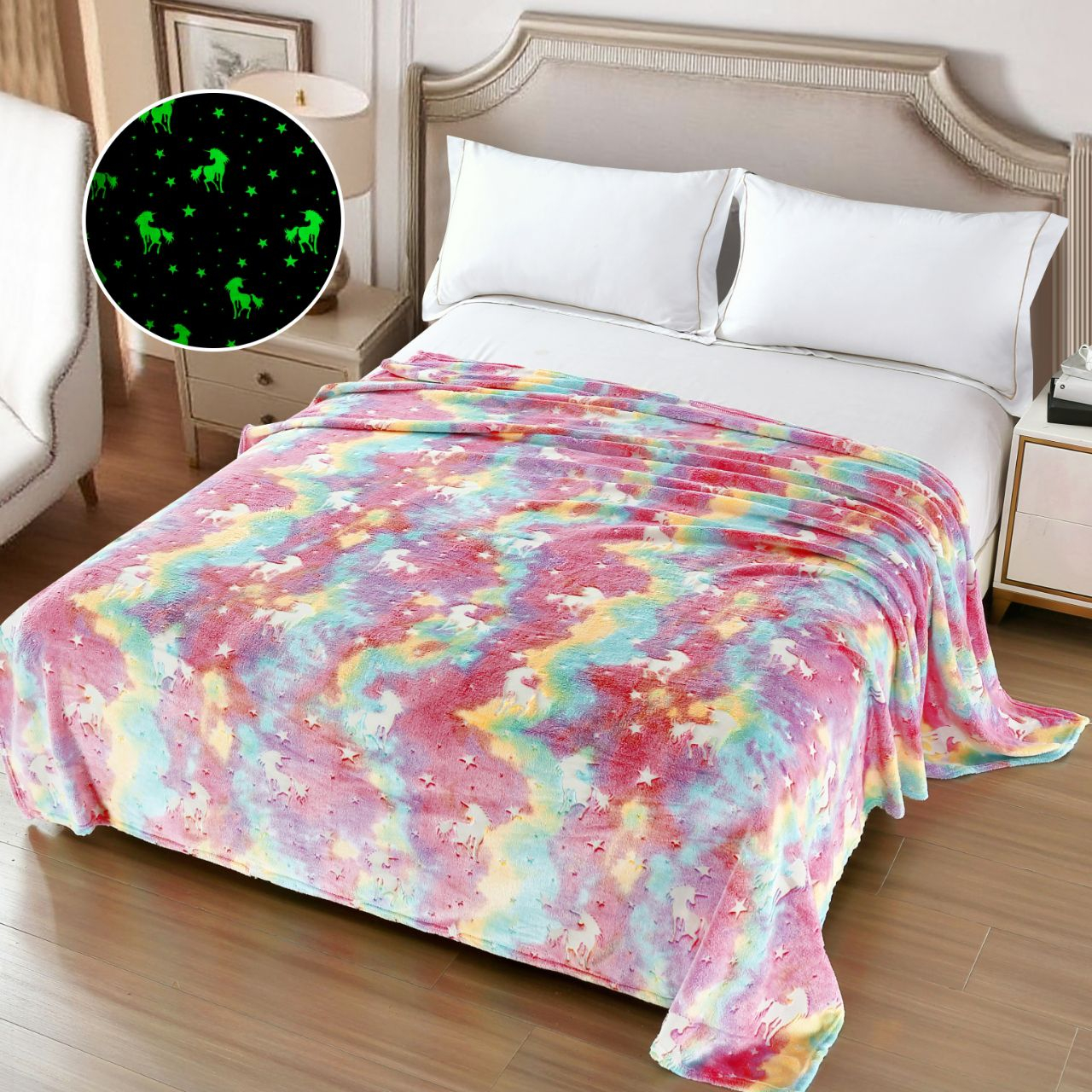 Un detaliu spectaculos al acestei pături este imprimeul fosforescent: se încarcă rapid la lumină naturală sau artificială și strălucește delicat în întuneric, creând o atmosferă relaxantă, romantică sau jucăușă, perfectă pentru serile petrecute în familie, cu prietenii sau pentru camera copiilor. Designul modern și dimensiunea generoasă de 200x230 cm acoperă cu ușurință un pat dublu sau poate fi folosită ca pled mare pentru canapea, aducând o notă de eleganță oricărui decor interior.