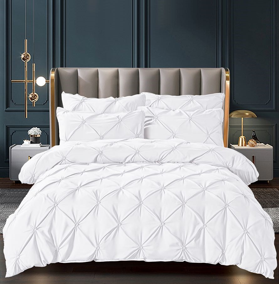 ✔️ Design modern cu pliuri elegante – realizate prin broderie fină pe cearșaful de pilotă și fețele de pernă.