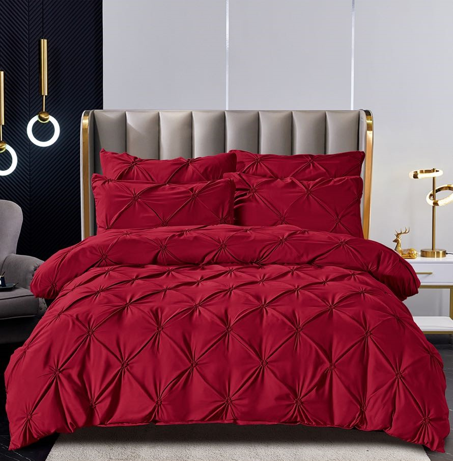 ✔️ Design modern cu pliuri elegante – realizate prin broderie fină pe cearșaful de pilotă și fețele de pernă.