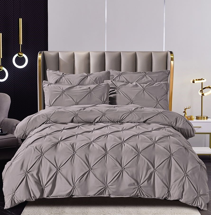✔️ Design modern cu pliuri elegante – realizate prin broderie fină pe cearșaful de pilotă și fețele de pernă.