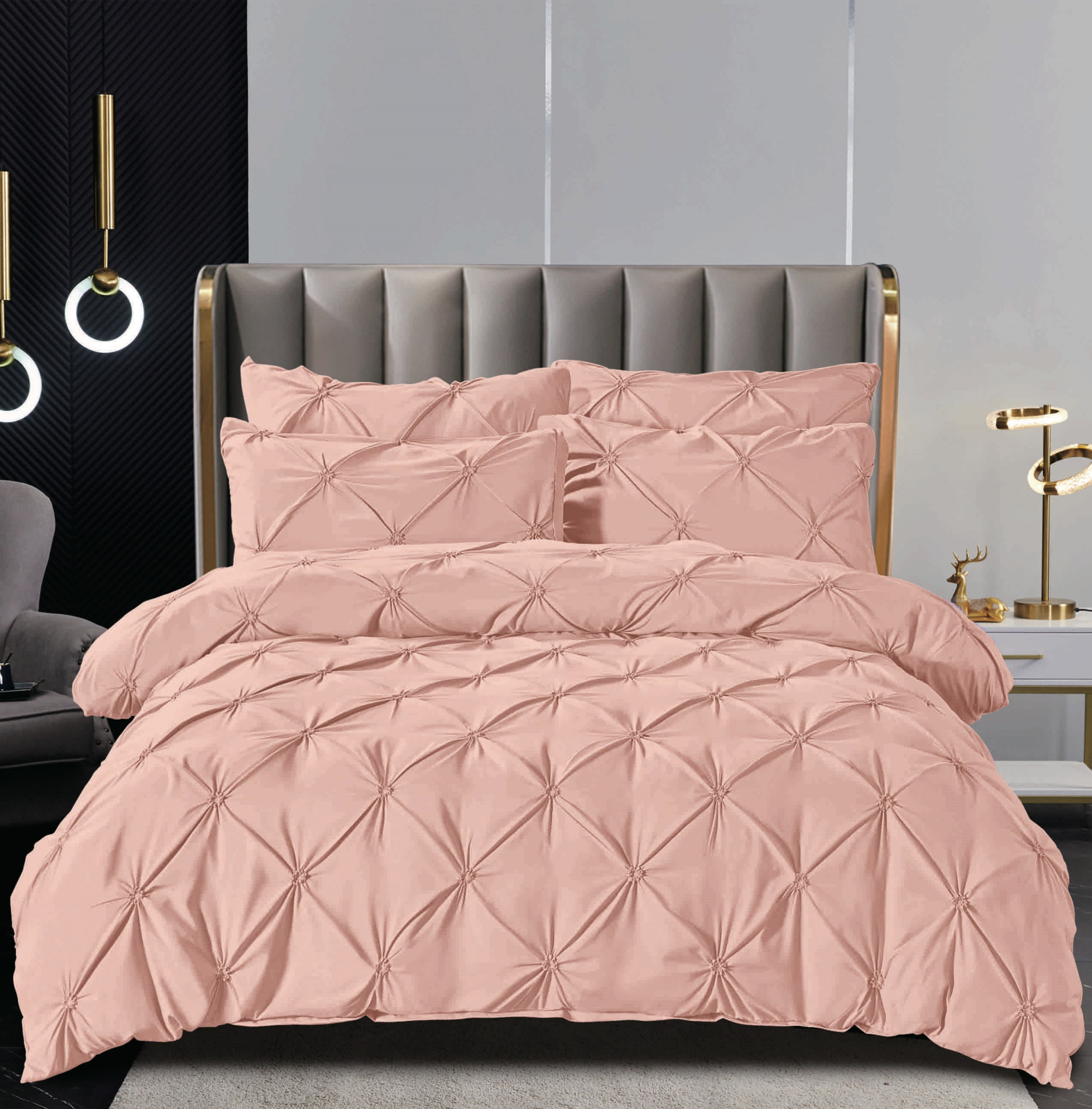 ✔️ Design modern cu pliuri elegante – realizate prin broderie fină pe cearșaful de pilotă și fețele de pernă.