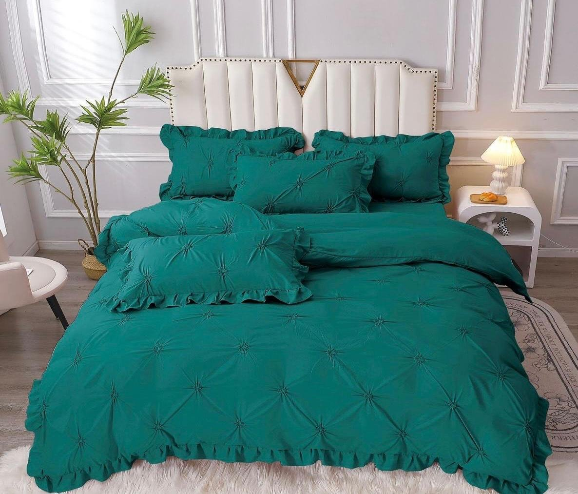 SUPER ELEGANT PUCIOASA Set Lenjerie Pat Dublu, 4 Piese, cu Pliuri și Volănașe