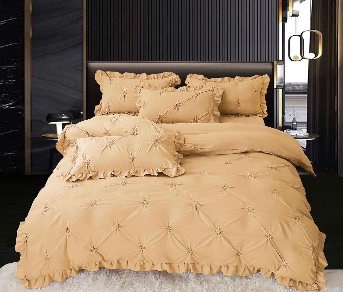 SUPER ELEGANT PUCIOASA Set Lenjerie Pat Dublu, 4 Piese, cu Pliuri și Volănașe