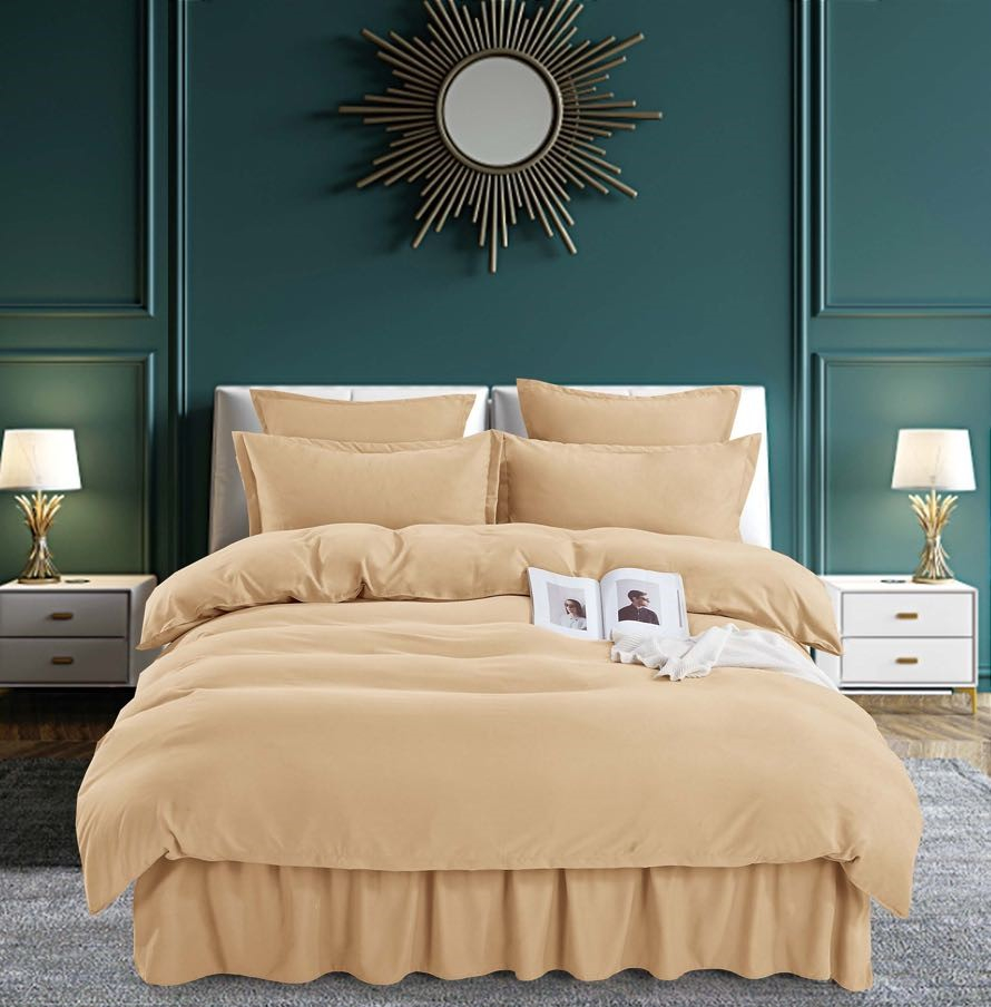 JOJO HOME Set Lenjerie Pat Dublu, 6 Piese, Bumbac Finet Uni, cu Volănașe