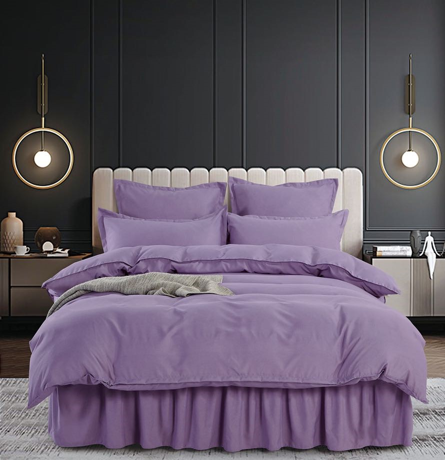 JOJO HOME Set Lenjerie Pat Dublu, 6 Piese, Bumbac Finet Uni, cu Volănașe